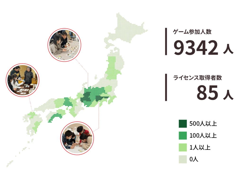山梨日日新聞社が、地域貢献に繋がる広告企画展開のために立ち上げた「やまなしSDGsプロジェクト」との共同開発によって生まれたカードゲーム「moritomirai(モリトミライ)」。2025年12月時点で9,300人以上(小学校66校、中学校23校、高校15校、大学6校、企業36団体、自治体38団体)が体験する広がりを見せています。