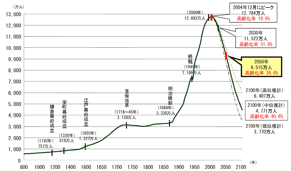 日本の総人口は現在減少期にありますが、長期的には増加し続けてきました。