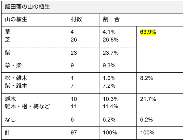 出典:近世伊那資料観光会編『近世伊那資料6』による。水本邦彦著「草山の語る近世より引用」