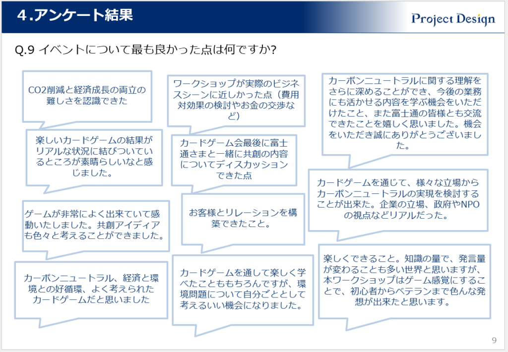 ―ここまではカードゲーム「2050カーボンニュートラル」を活用したワークショップという観点でお話をいただきました。カードゲーム「2050カーボンニュートラル」というゲーム自体への感想はいかがでしょうか。