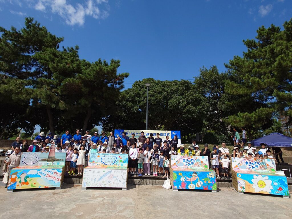 村井様(今治市 環境政策課):その「海ごみ拾い織田ヶ浜CUP」では、公益財団法人B&G財団の助成を受けて実装した海洋漂着ごみ専用の回収箱「ありがとうごみ箱」のお披露目を行いました。