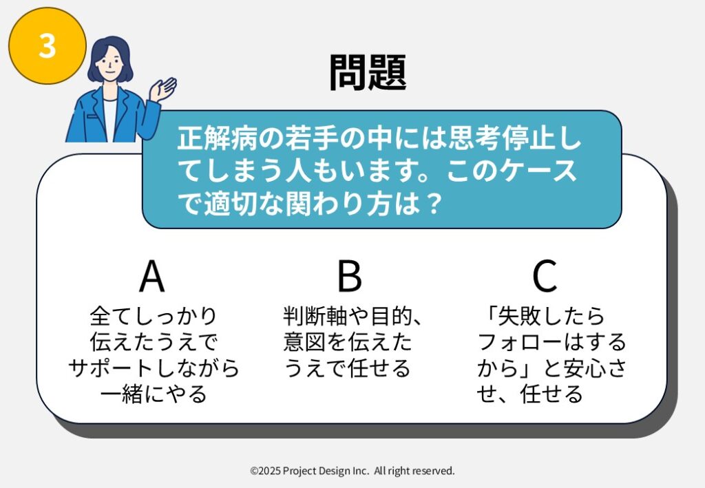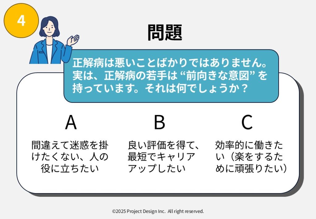 正解病とは何か?クイズで分かる!OJTにおける正解病のタイプ別の処方箋(対応策)