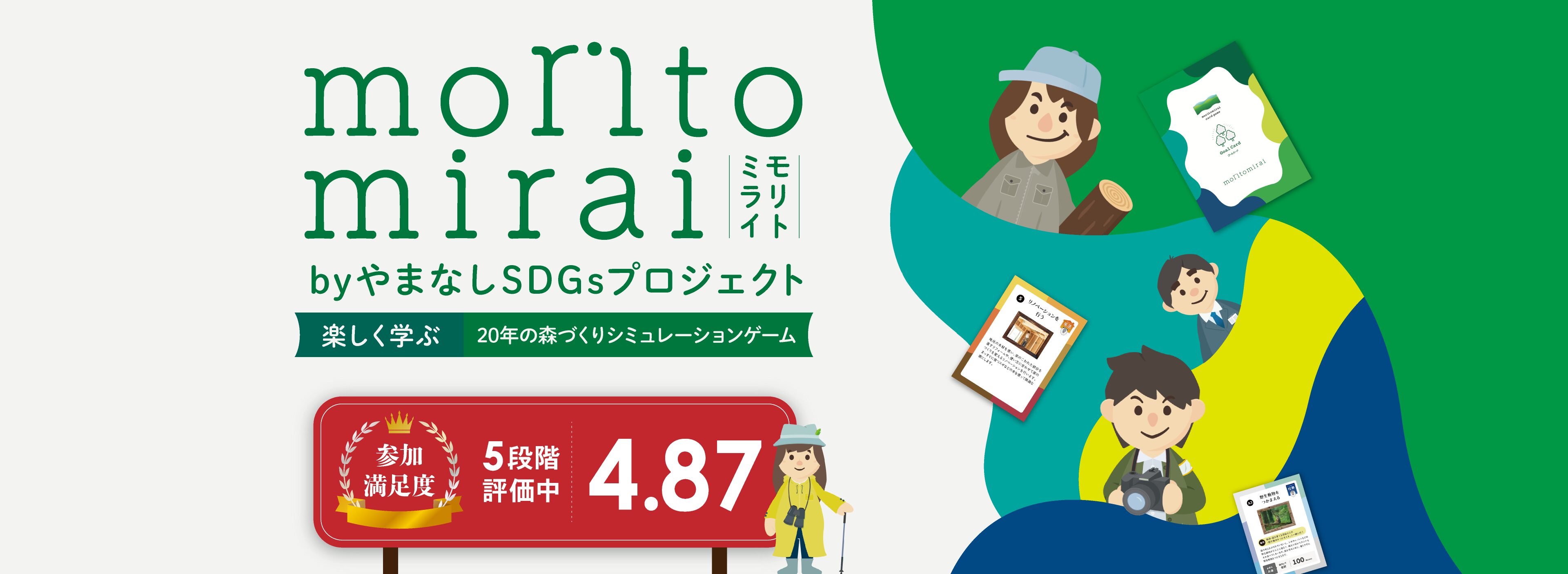 森の荒廃・林業従事者の減少などの問題解決に向け、持続的に森林の価値を守り、子どもから大人まで楽しみながら森林の現状や持続的活用に関して理解できるツールとして、カードゲーム「moritomirai(モリトミライ)」は開発されました。