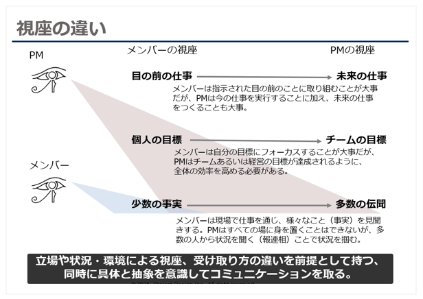 PMBOK(プロジェクトマネジメントの知識体系)を通じてQCD(品質・コスト・納期)やプロジェクトのスコープの定め方、要因管理や調達管理など、プロジェクトマネジメントの知識を得ることは重要です。しかし、それだけでは十分ではありません。