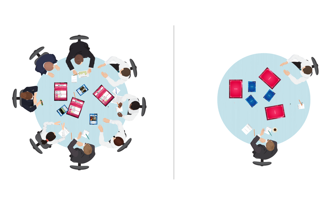 赤色のカードの真ん中に書かれた「必要資源」と「必要資金」を集め、ファシリテーターに提出します。ただし、自社の手持ちのカードだけではビジネスを設立することは出来ません。他チームへの営業や交渉を通じて、必要なカードを集める必要があります。